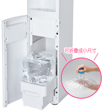 下置式設計・設置在腳的高度,簡單輕鬆換水。隱藏在底櫃的水樽設計,整潔又美觀。水樽用完後亦可直接丟棄。
